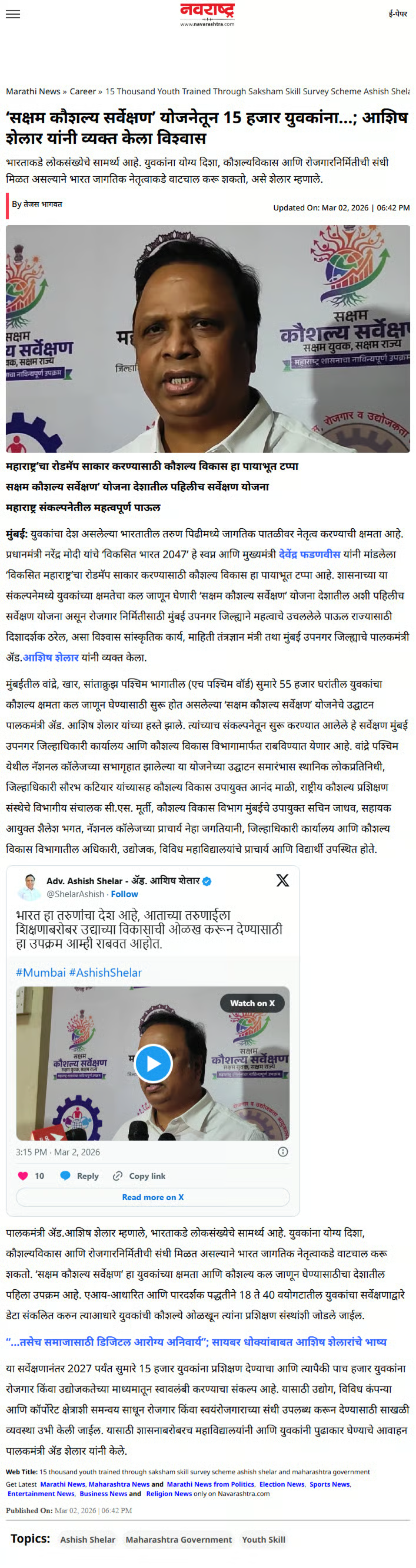 15-thousand-youth-trained-through-saksham-skill-survey-scheme-ashish-shelar-and-maharashtra-government