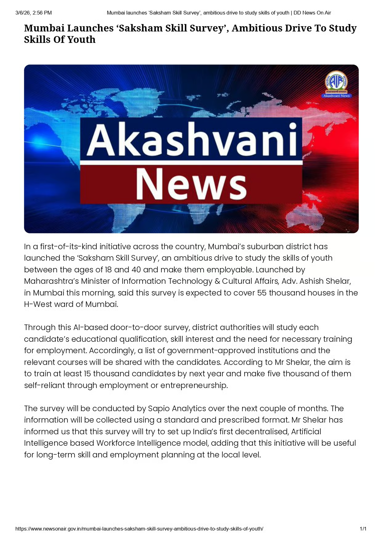 Mumbai launches ‘Saksham Skill Survey’, ambitious drive to study skills of youth